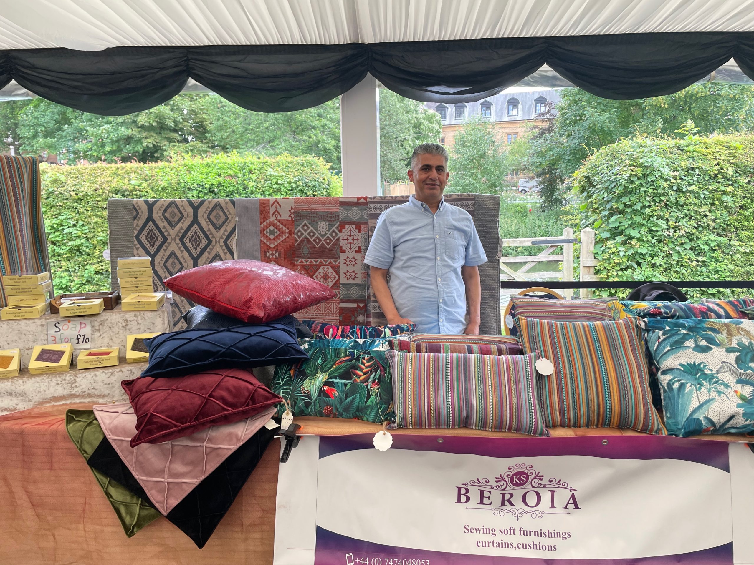The bazaar was also teeming with artisanal goods made by designers with a migratory background: bespoke cushions, curtains, tote bags, and Syrian soaps sold by Khalid and his daughter Shireen from Beroia, and earrings crafted by members of the Syrian Sisters.